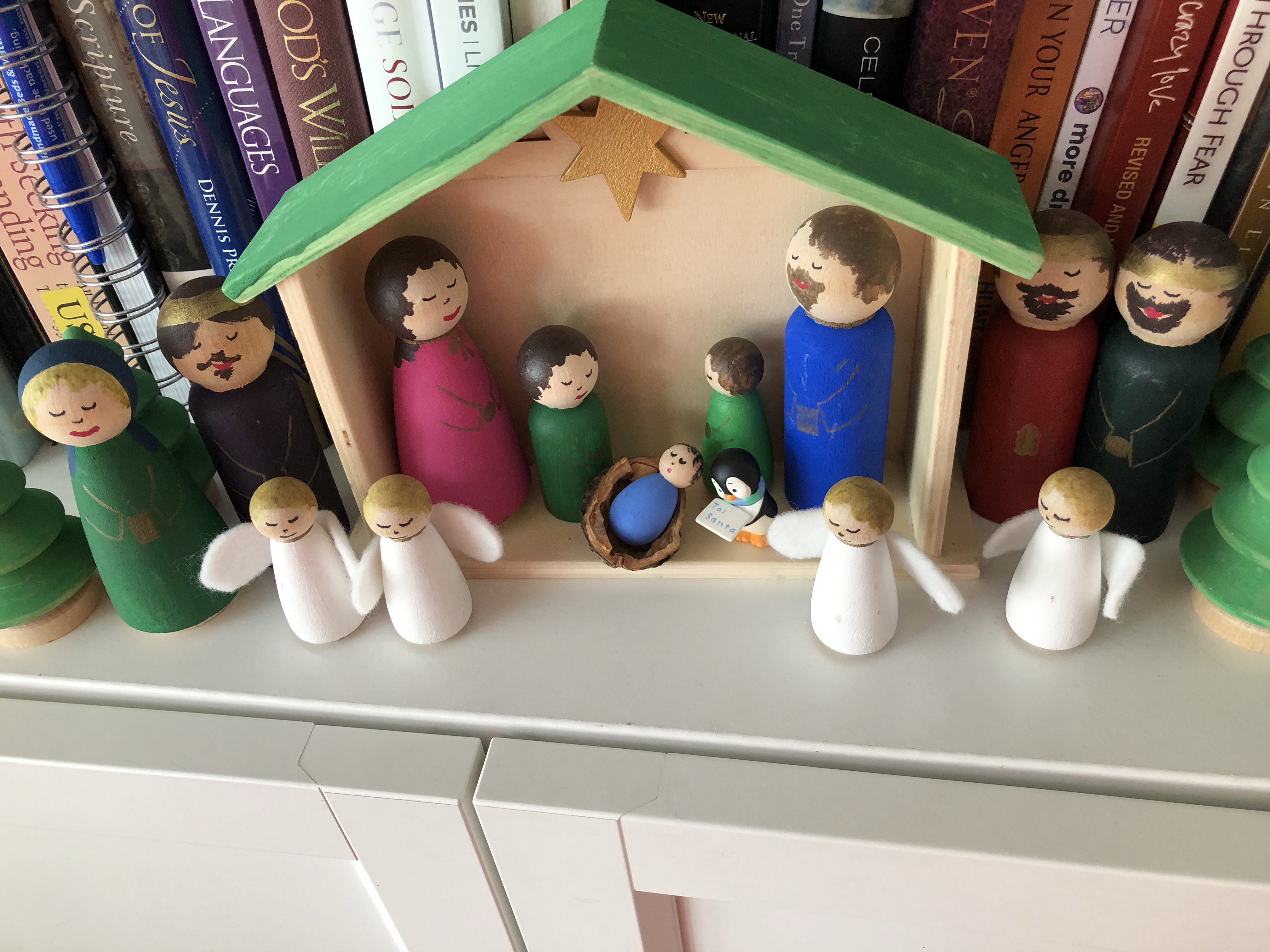 Now my Anna and Luke have taken over the job of setting up our Nativity and I had to have a little chuckle when I saw an additional friend had been added this year! (See above photo) I’m pretty sure penguins were not part of the animals present at the birth of Jesus, however my little Luke’s love for penguins made him decide to add one to our Christmas scene.